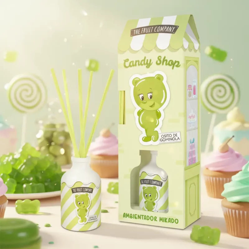 Découvrez le désodorisant d'ambiance Mikado Cotton Candy de The Fruit Company, composé de bâtonnets parfumés.